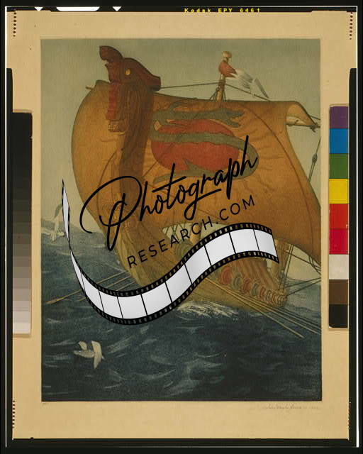 The Dragon Ship,Viking Ship,Bow,Port Side View,Sail,1922,John Taylor Arms