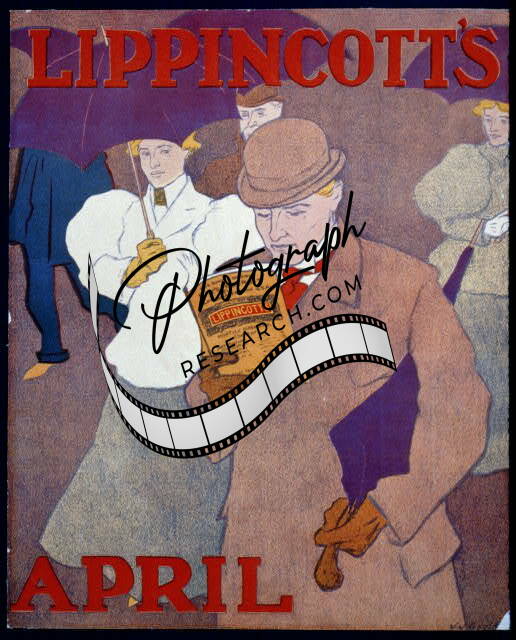 PHOTO ONLY of Lippincott's for April,Well Dressed Man Intently Reading,Rain,1897