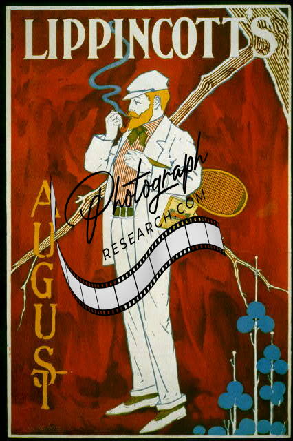 PHOTO ONLY of Lippincott's for August,1895,Man Smoking Pipe,Tennis Racket