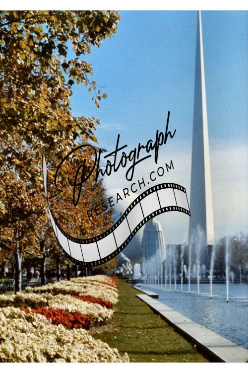 Trylon,perisphere,statue of George Washington,New York World's Fair,photograph