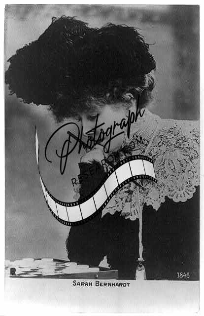 Sarah Bernhardt, 1844-1923,feathered hat,checkerboard