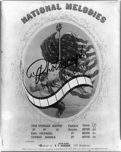 PHOTO ONLY of Sheet Music Cover,National Melodies,American Flag,1830-1910