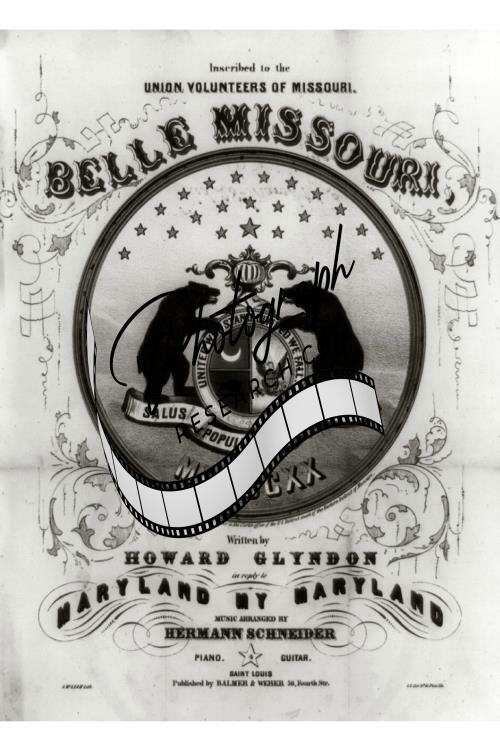 PHOTO ONLY of Sheet Music Cover,Belle Missouri,Howard Glyndon,c1863,Eagle,Shield