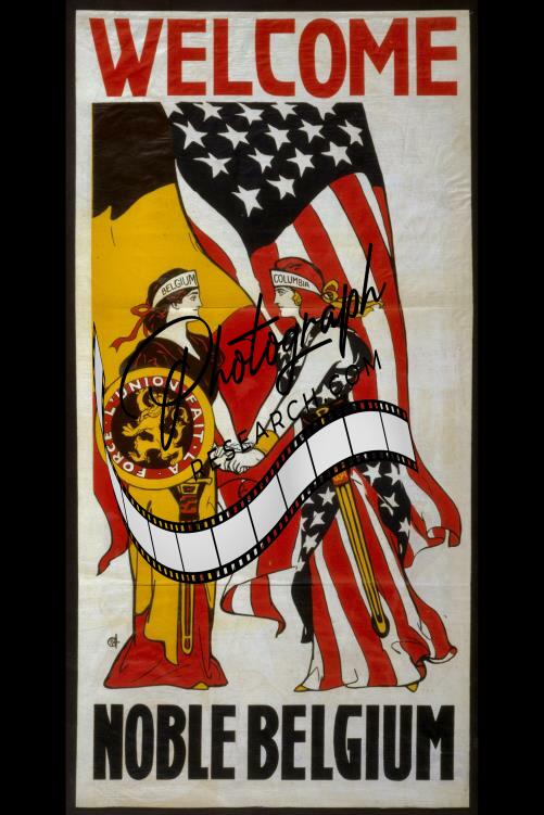 Welcome noble Belgium,WWI,1917,American War Poster Photo,Belgian Flag,US Flag