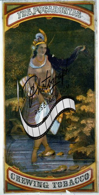 Photo of Tobacco Label,Pocohontas Chewing Tobacco,1867,Indian Maiden,Stream
