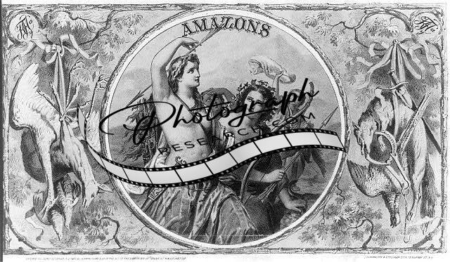 PHOTO ONLY,Tobacco Label,Amazons after hunt,Hunting,Animals,c1871