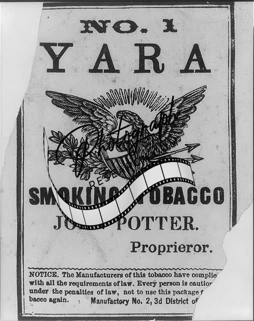 PHOTO ONLY,Tobacco Label,Yara Smoking Tobacco,1870,United States Eagle,Bird