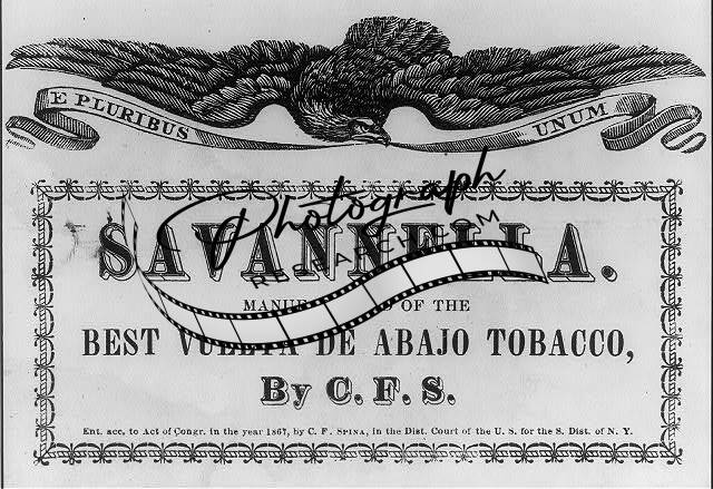 PHOTO ONLY,Tobacco Label,Savannella,Vuelto de Abajo Tobacco,c1867,American Eagle