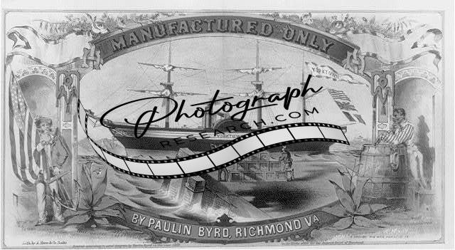 PHOTO ONLY,Tobacco Label,Yorktown,Sidewheeler,Paulin Byrd,Richmond,Virginia,1859