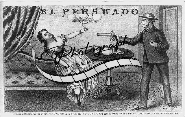PHOTO ONLY,Tobacco Label,El Persuado,c1868,Man shooting woman,pistol,c1868
