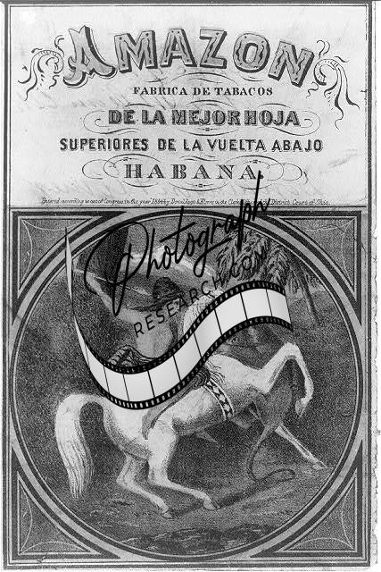 PHOTO ONLY,Tobacco Label,Amazon fighting wild beast on horseback,c1864
