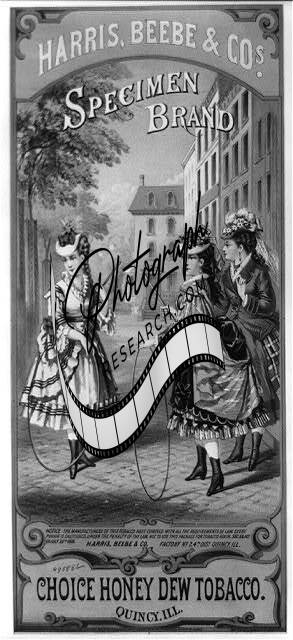 PHOTO ONLY,Tobacco Label,Harris,Beebe & Company,Honey Dew Tobacco,Quincy,IL,1858