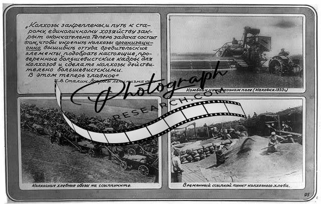 Scenes,grain harvesting,collective farm,Russia,quote,Stalin,Bolshevik,1917