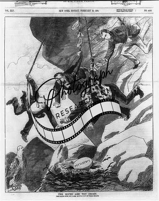 Political Cartoon,Cleveland,Depew,Foraker,Sherman,Democracy,1888
