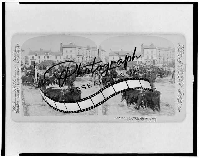 Photo of Stereograph,Galway Cattle Market,Galway,Ireland,c1901,Cows,Animals
