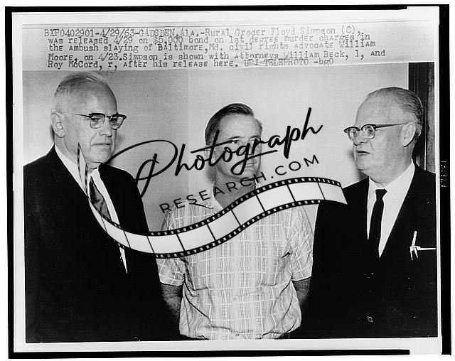 Floyd Simpson, alledged murderer of Baltimore civil rights advocate William Moore, half-length portrait, flanked by his attorneys (l) William Beck and (r) Roy McCord