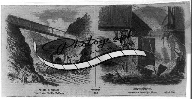 The Union vs secession,Union builds bridges & secession destroys them,1861,RR