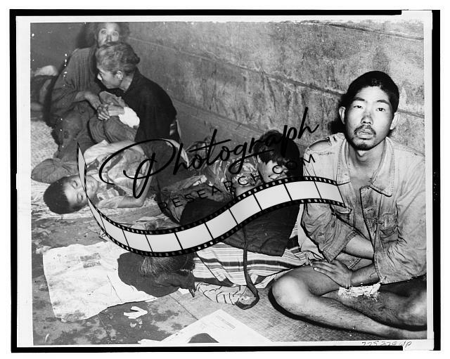 Subway station home, Photograph shows homeless Japanese families huddled in subway stations to sleep.