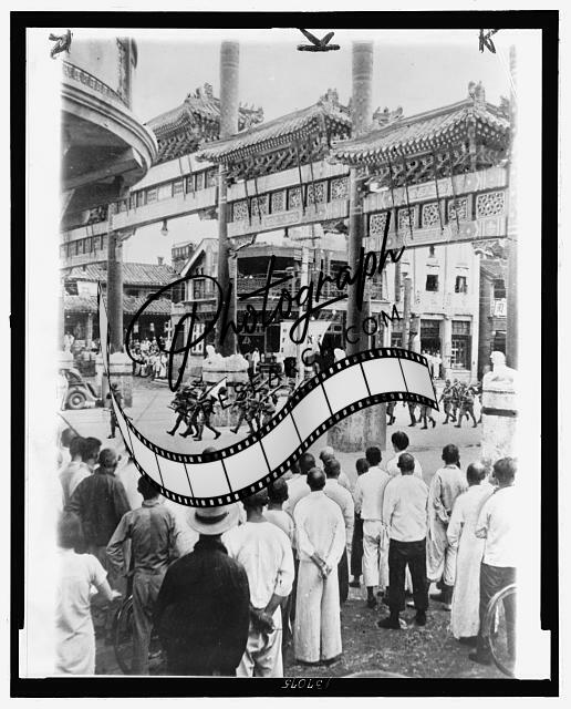 The capture of Peiping,Japanese troops marching into Beijing,Pailou,1937
