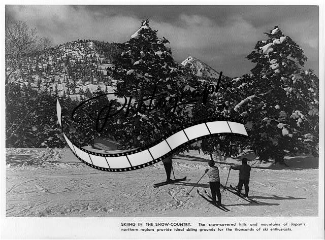 Skiing,snow country,mountains,trees,hills,northern region,sports,Japan,1963