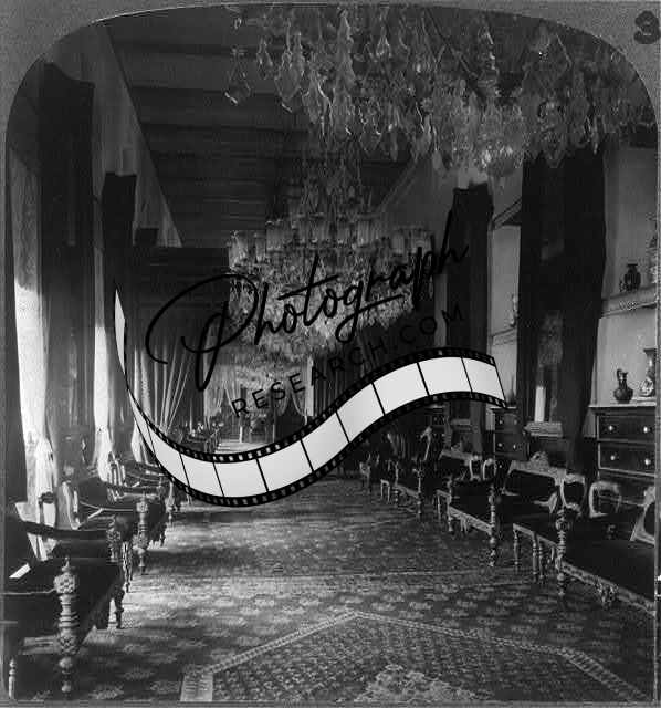 Throne room of Sultan's palace,Zanzibar,East Africa,c1912,chandeliers,photograph