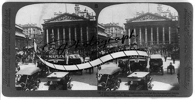 London's financial centre,Royal Exchange,Bank of England,c1913,automobiles,photo
