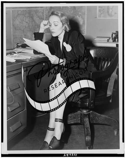 Marlene Dietrich,radio script,pencil,office,Branch,Bureau,Public Relations,1942