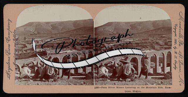 Peon silver miners loitering on the mountain side, Zacatecas, Mexico