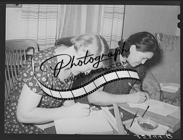 Title: Rural young women arriving at pie supper with their pies which will be auctioned off. Muskogee County, Oklahoma. See general caption number 24