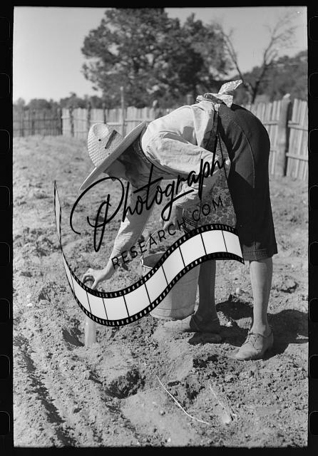 Title: Mrs. Caudill setting out cabbage plants in her garden, Pie Town, New Mexico