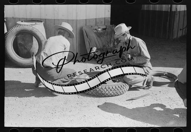 Title: Changing tire at the garage. Pie Town, New Mexico