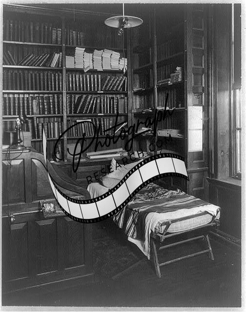Thomas Alva Edison,1847-1931,view of office desk,telephone,bookcases,rumpled cot