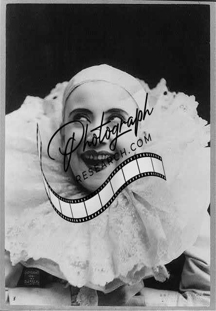 Pilar Morin as clown/mime: head,shoulders,; smiling,c1895