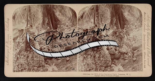 Drinking the milk of the cocoanut palm,Jamaica,W.I.