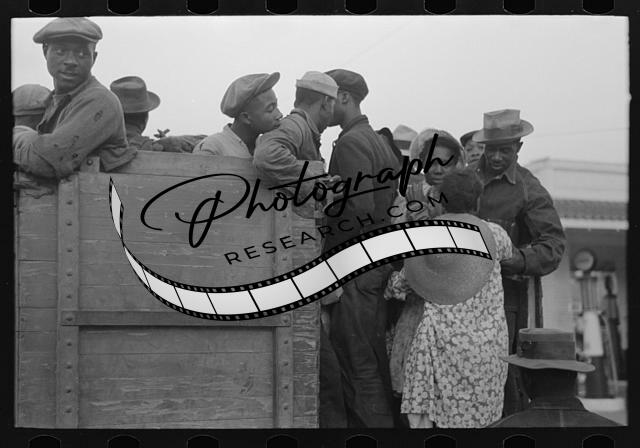 Title: Helping women cotton pickers board truck, Pine Bluff, Arkansas