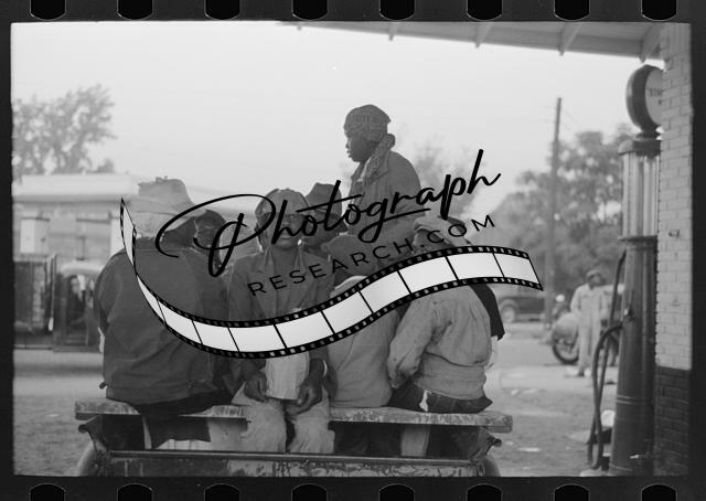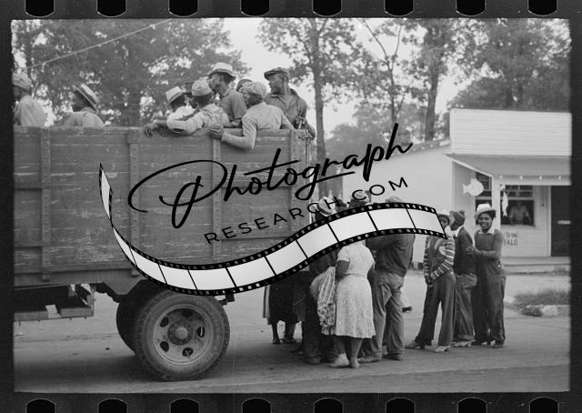 Title: Cotton pickers boarding truck which will take them to the fields, Pine Bluff, Arkansas