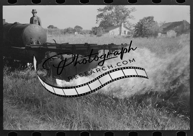 Weed burner in operation near Jeanerette,Louisiana,LA,Farm Security Admin,FSA 1