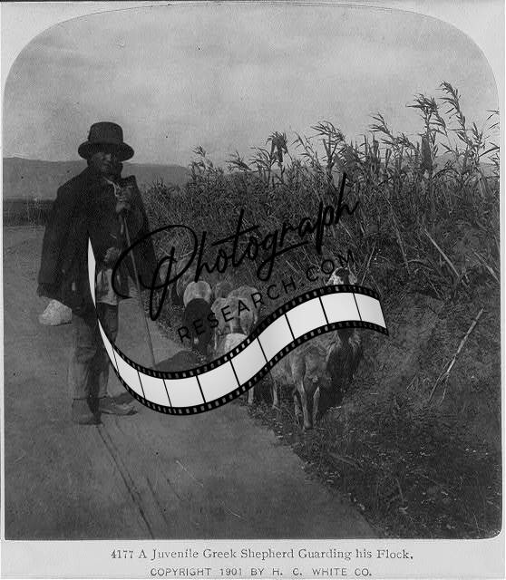A juvenile Greek shepherd guarding his flock,Sheep,c1901,Animals