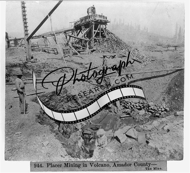 Placer Mining in Volcano,Amador County - the Mine,California,CA,1866