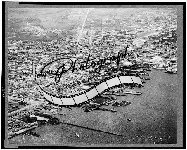 Aerial view of Cienfuegos Cuba and waterfront, 1930's
