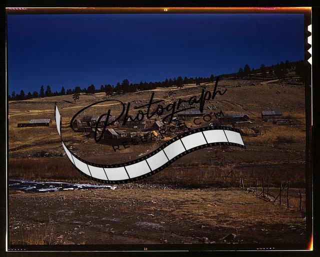 La Alama,mountains,World War,buildings,Questa,NM,New Mexico,John Collier,1943