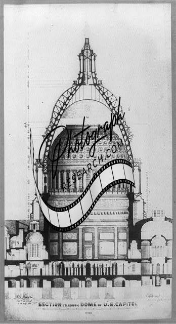 Original design of the new dome on the U.S. Capitol,Washington,DC,1852-1860