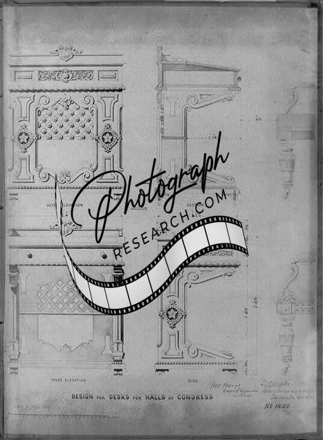 Design for desks for Halls of Congress,US Capitol,1852-1860,photo of drawing