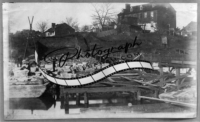 Washington Aqueduct,c1852-1860,houses/buildings in the background