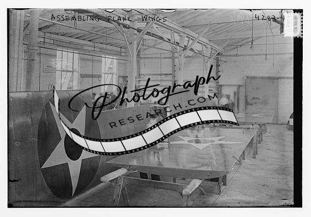Assembling plane wings,airplane productions,workers,equipment,Bain News Service