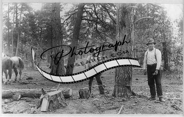 Men sawing down tree,Flagstaff,Arizona,AZ,Lumber Industry,c1900,Coconino County