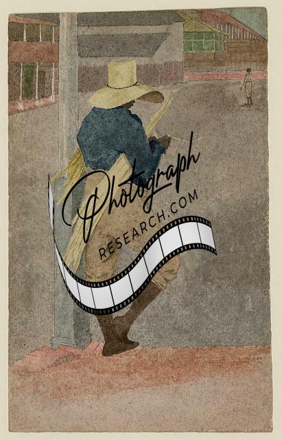 Negro man in straw hat,stripping cane,William Berryman,artist,people,Jamaica