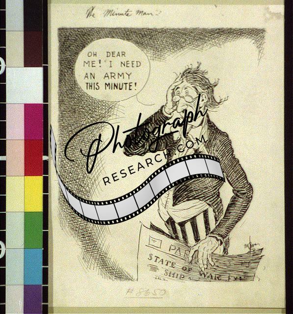 The minute man,World War I,WWI,Uncle Sam,Army,Cartoon,Lawrence De Bow,1917