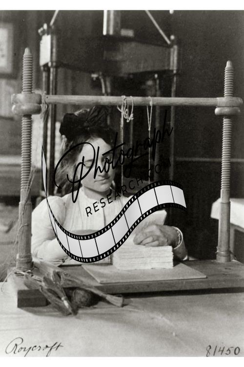 Woman doing bookbinding at Roycroft Shops,E. Aurora,N.Y.,New York,1900