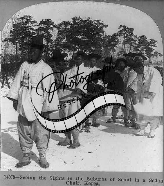 Seeing the sights in the suburbs of Seoul in a sedan chair,Korea,c 1901